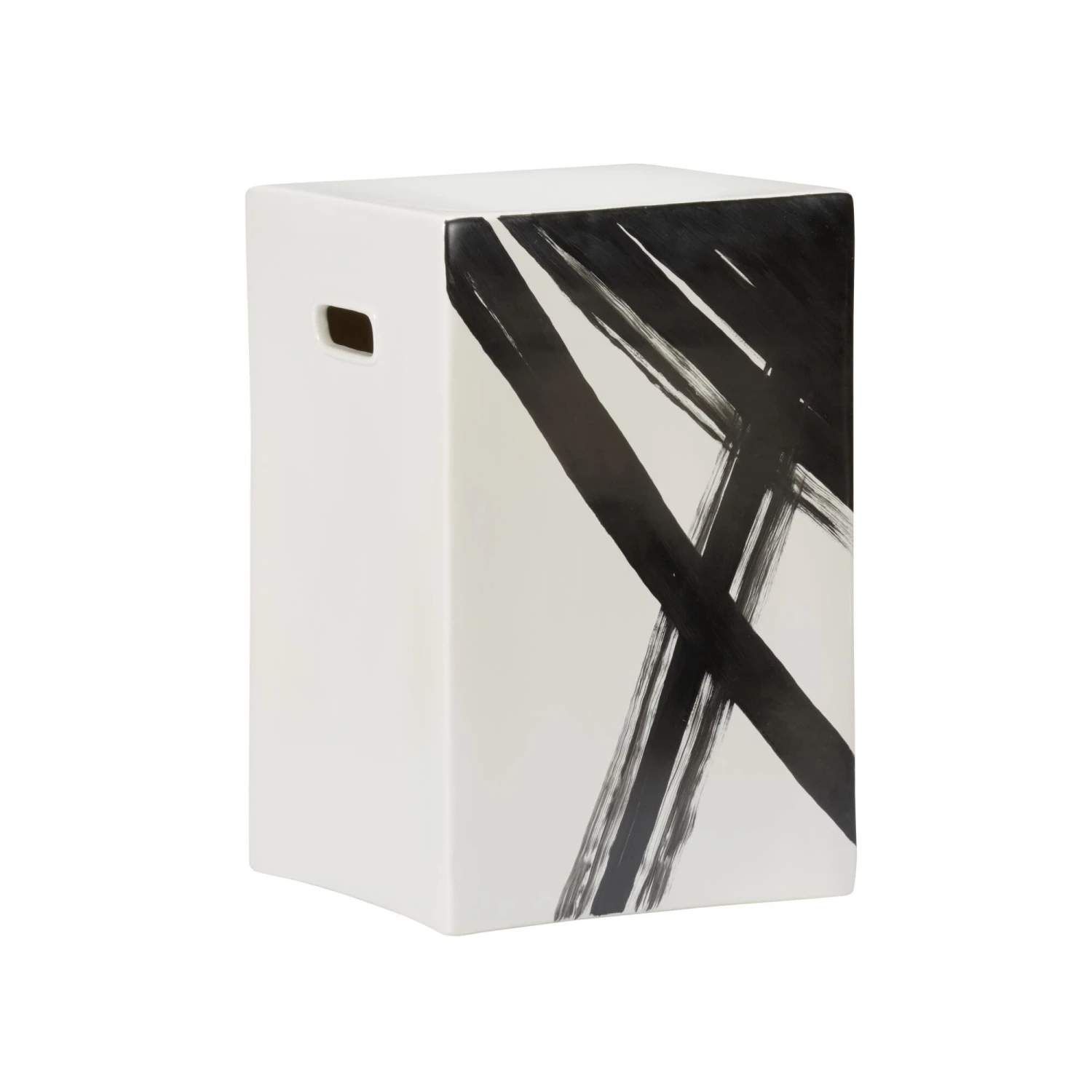 Inspired By The Abstract Art Of Franz Kline And Japanese Calligraphy, This Garden Seat Features An Original Black And White Abstract Composition On Glazed Ceramic. Display As A Small Table Or Stool To Complete Your Porch Or Garden Design.