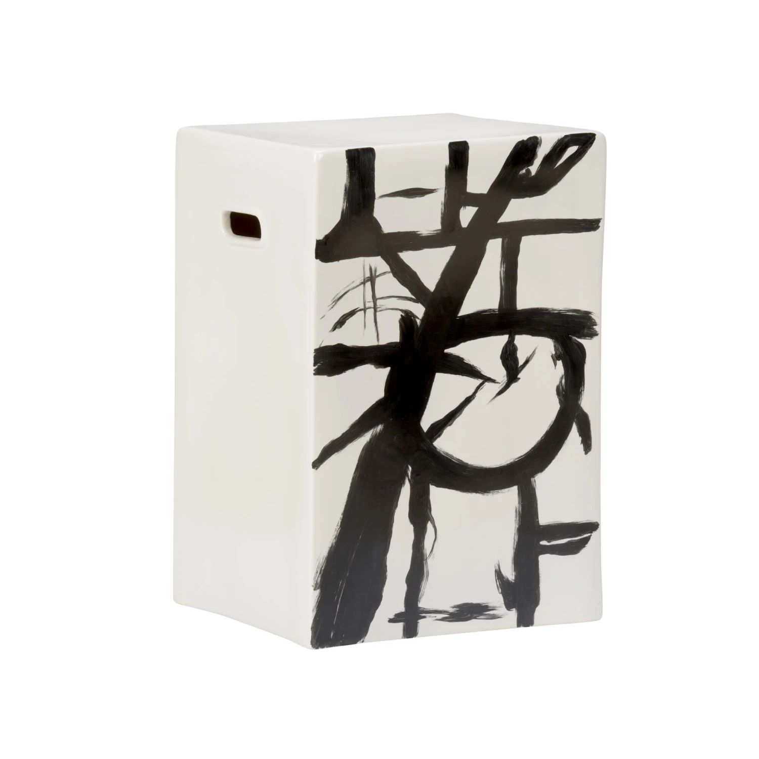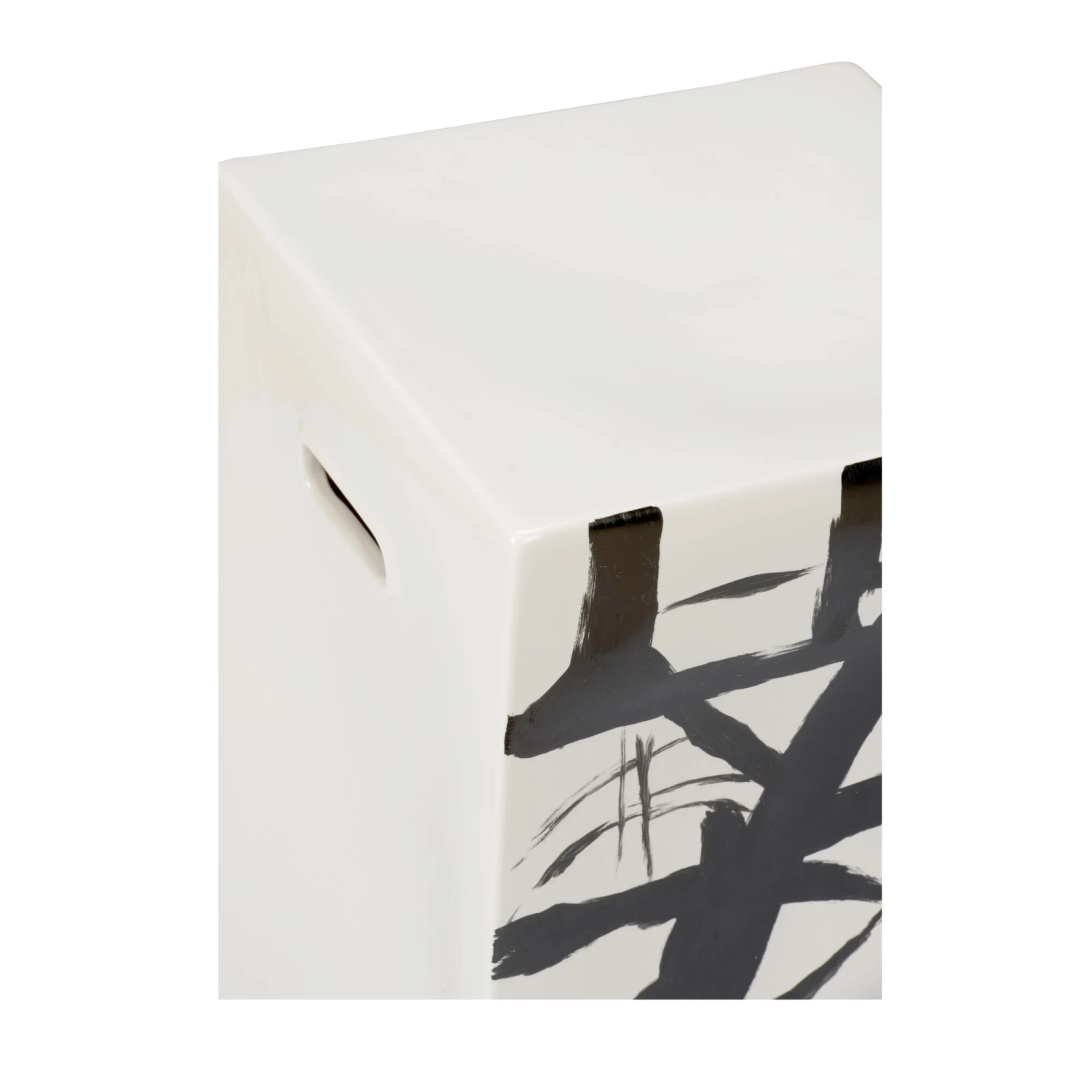 Inspired By The Abstract Art Of Franz Kline And Japanese Calligraphy, This Garden Seat Features An Original Black And White Abstract Composition On Glazed Ceramic. Display As A Small Side Table Or Stool To Complete Your Porch Or Garden Design.