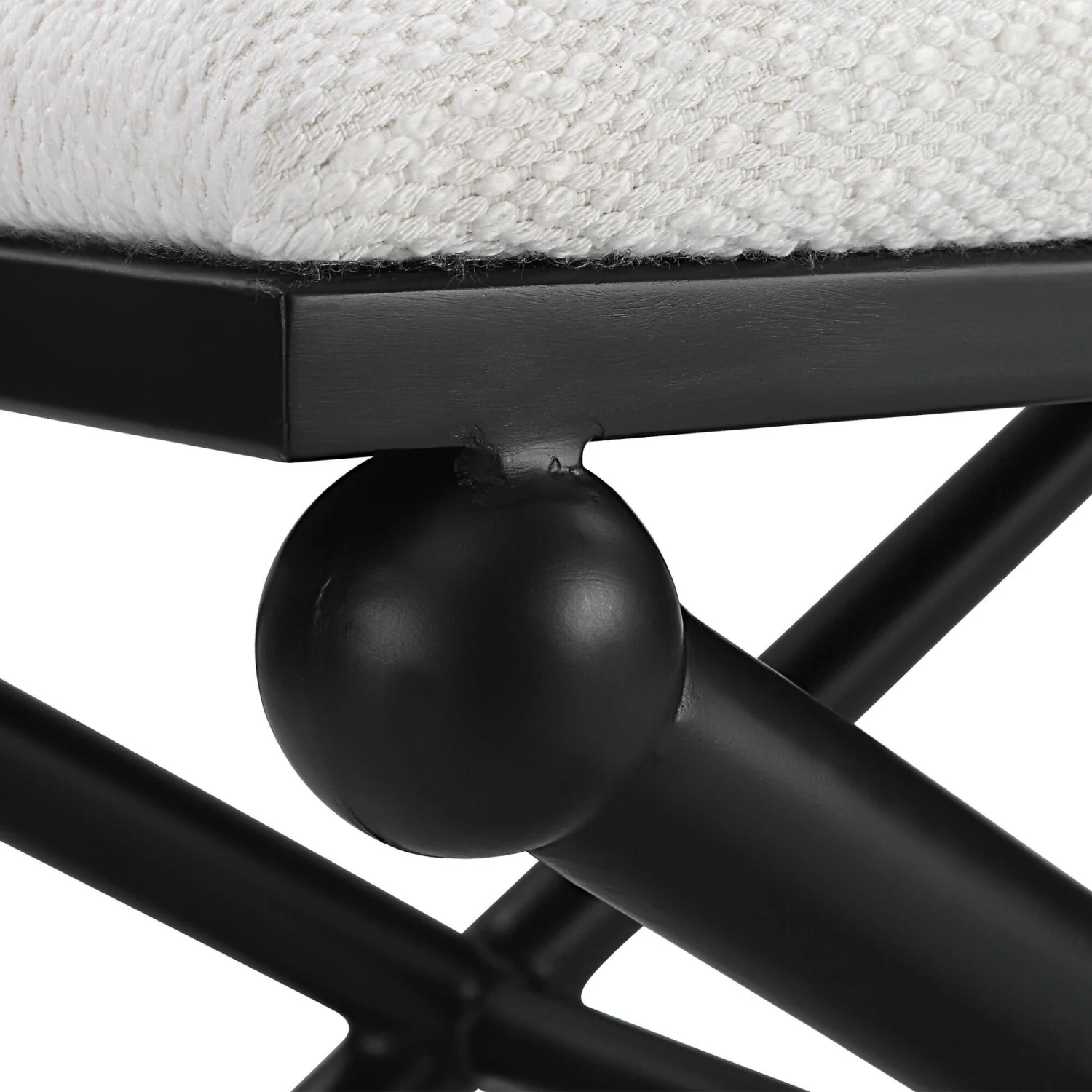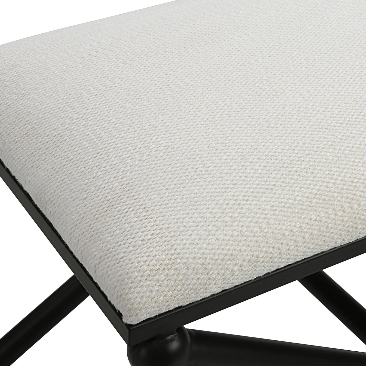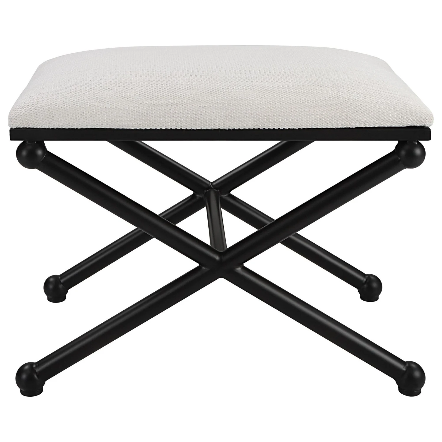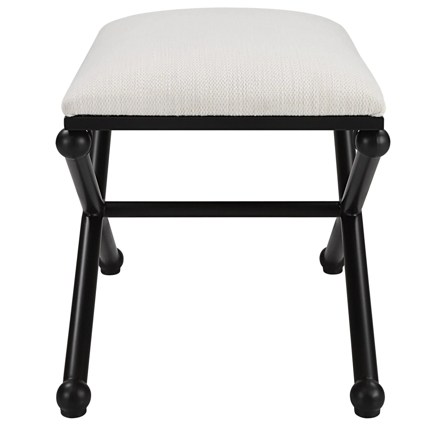 With Classic Simplicity, This Small Bench Features A Smooth Iron Base Finished In Satin Black, Upholstered In A Crisp Textured White Polyester.