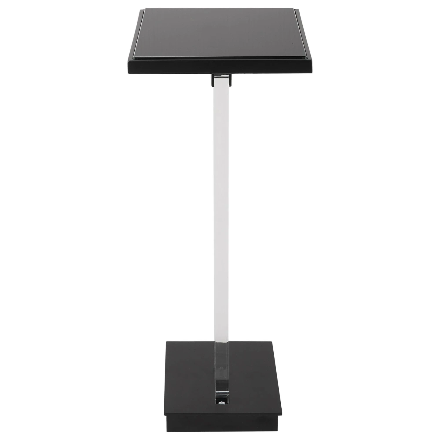 An Ode To Contemporary Styling, Our Angle Accent Table Showcases A Gravity Defying Design Featuring A Clear Angular Support. Top Is Black Mirror With A Coordinating Black Metal Base.