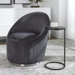 The Apollo Dining Table is a study in refined simplicity. A round tabletop is mounted on a pedestal column featuring bleached wood vertical fluted detailing. A brass plinth base and edging around the tabletop adds elegance.