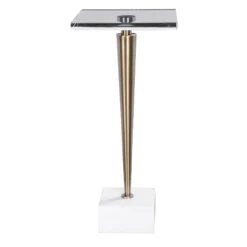 Showcasing Industrial Styling, This Hand Crafted Accent Table Features An Solid Cast Aluminum Construction With A Tripod Base Finished In Antique Gold.