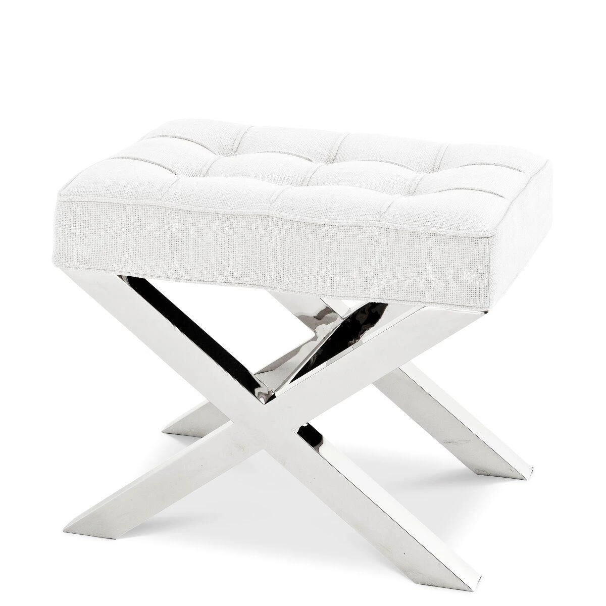 The sleek and chic Beekman Place Stool features a seat with Avalon white upholstery and button detailing and a stylish crossover base of polished stainless steel. Provide a comfortable seating option in your lounge interior, bedroom or hallway, with the Eichholtz Beekman series. Combine with luxury lighting and furniture from the Eichholtz collection for a an exquisite classic or contemporary designer style.