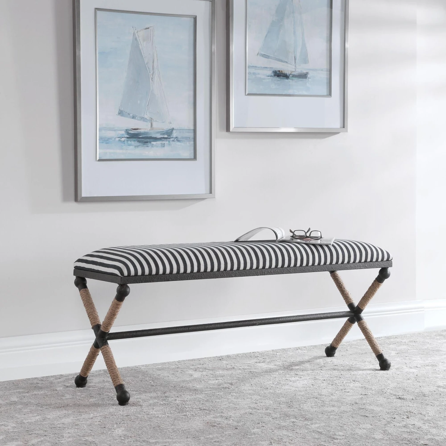 Rustic Iron Is Accented By A Cushioned Top, A Sturdy Sailor-striped Cotton In Crisp Navy And Cream.