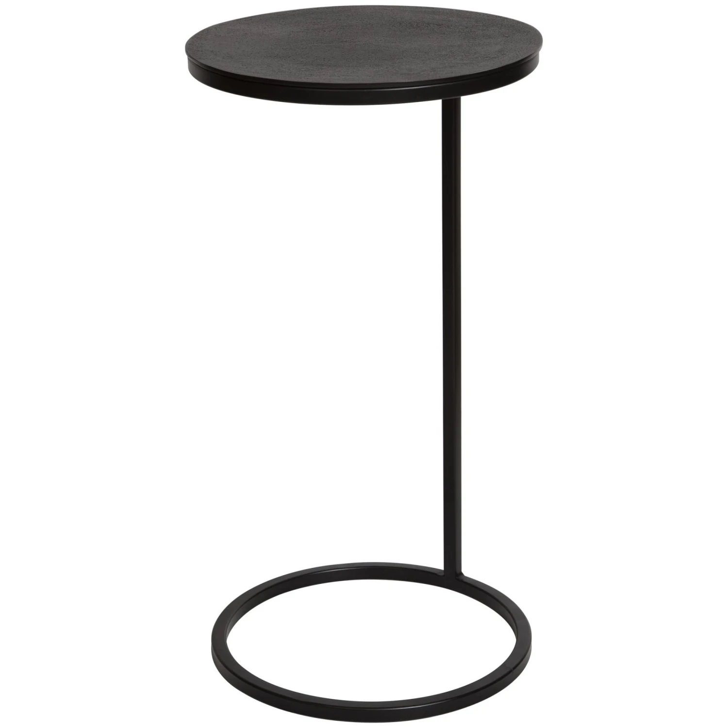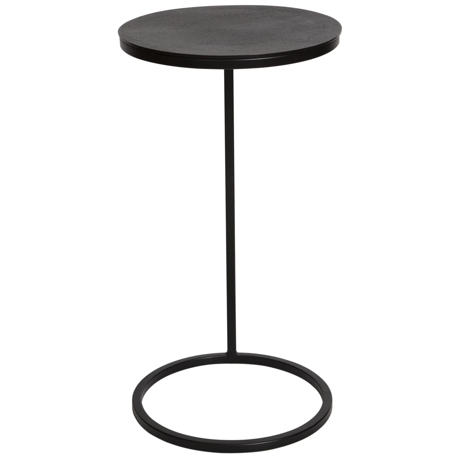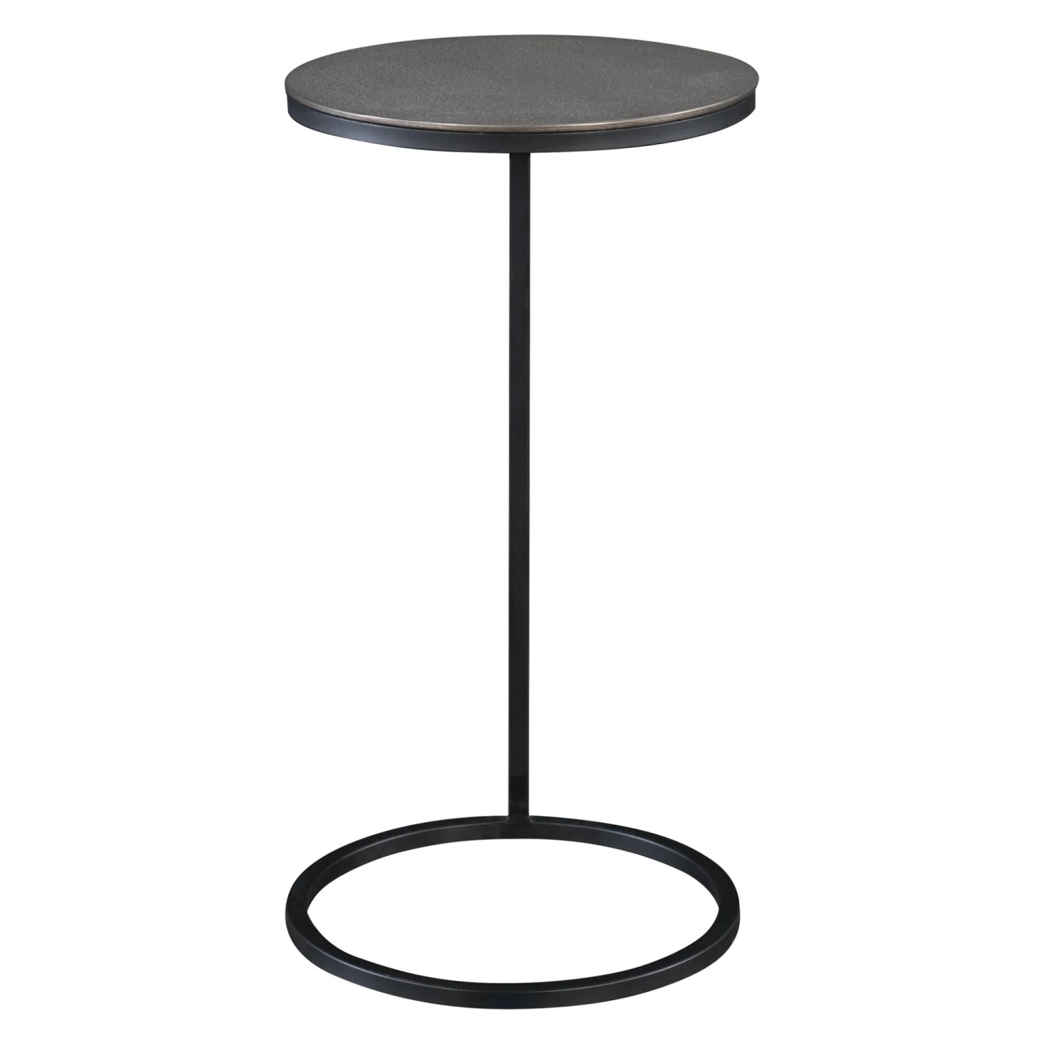 Modern And Streamlined, This Round Accent Table Is Constructed In An Aged Black Iron Featuring A Cast Textured Aluminum Slab Top Finished In A Plated Antique Nickel.