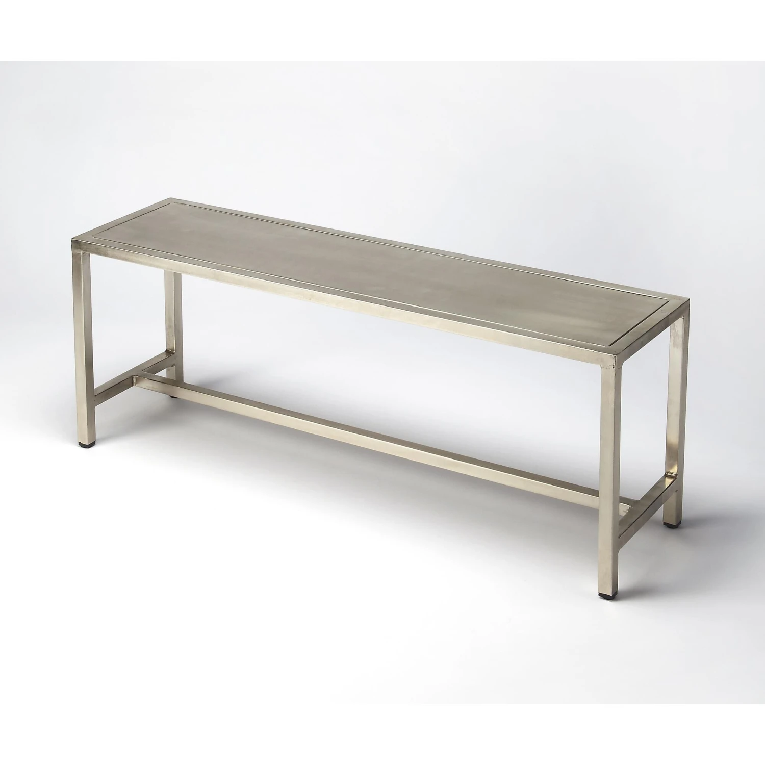 With a minimalistic feel that is clean and smart, this sleek bench embodies a light, streamlined design. Crafted with iron and poslished to resemble a brushed nickle finish, this bench can be used in entryways, in a minimalist modern kitchen or anywhere you need extra seating. WARNING: This product can expose you to chemicals including Nickel compounds, which are known to the State of California to cause cancer or birth defects or other reproductive harm. For more information go to www.P65Warnings.ca.gov/furniture