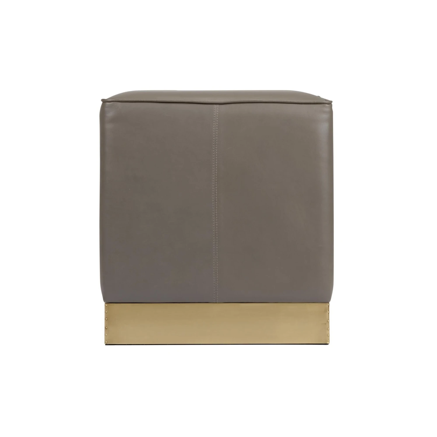 Capable Of Serving Many Purposes, The Trend Setting Dorian Gray Pouf Features A Square Design Of Stunning Gray Leather. A Stainless Steel Base With A Warm Antique Brass Finish Gives Support. Easily Transportable For Use As A Footstool Or Extra Seating Throughout Your Home Or Office.