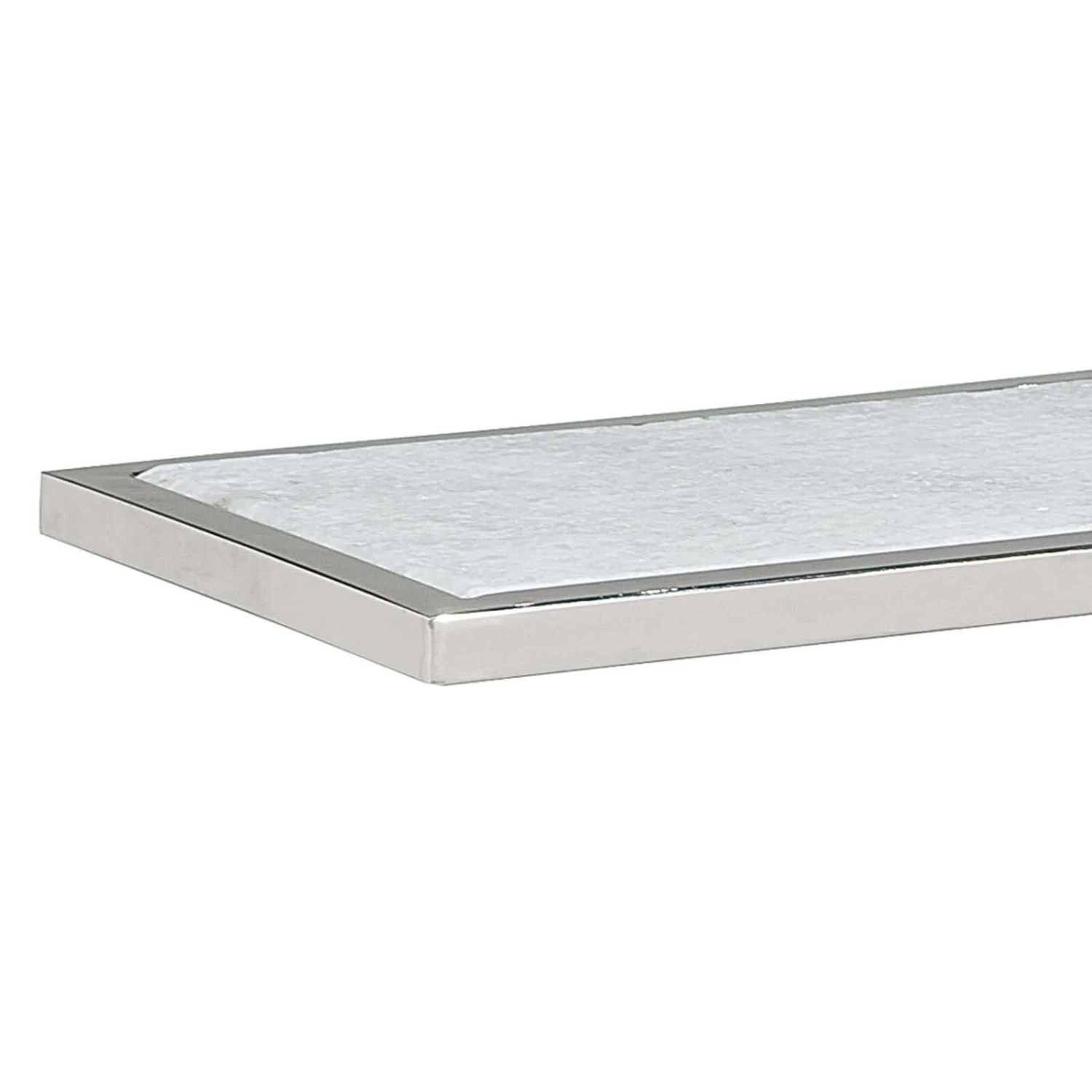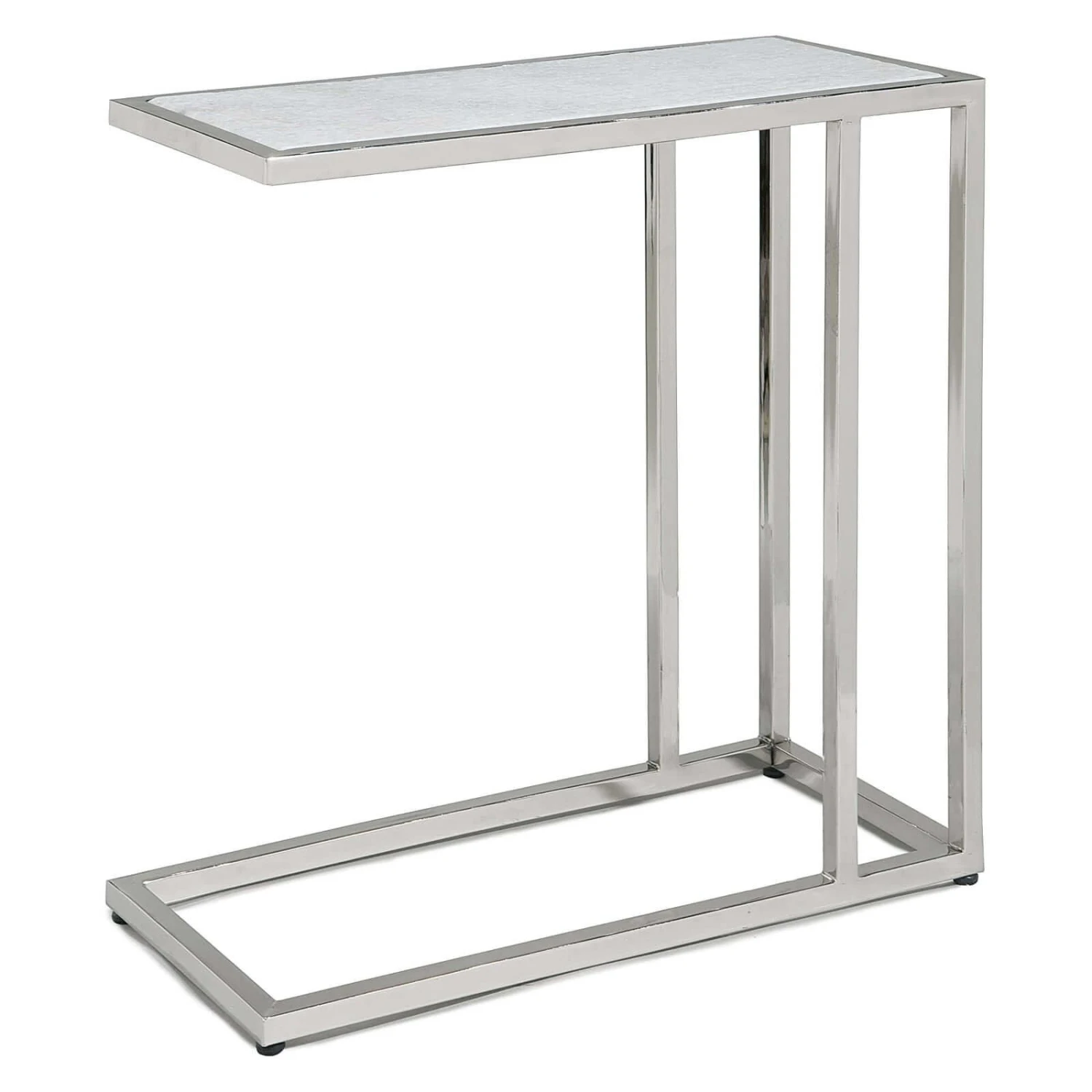 At home in a variety of decors, the Echelon sofa hugger table pairs white marble slab with a natural brass iron frame. Sized to sit within perfect reach, the table is designed to hold your favorite cocktail beside an armchair, a sofa or a settee.