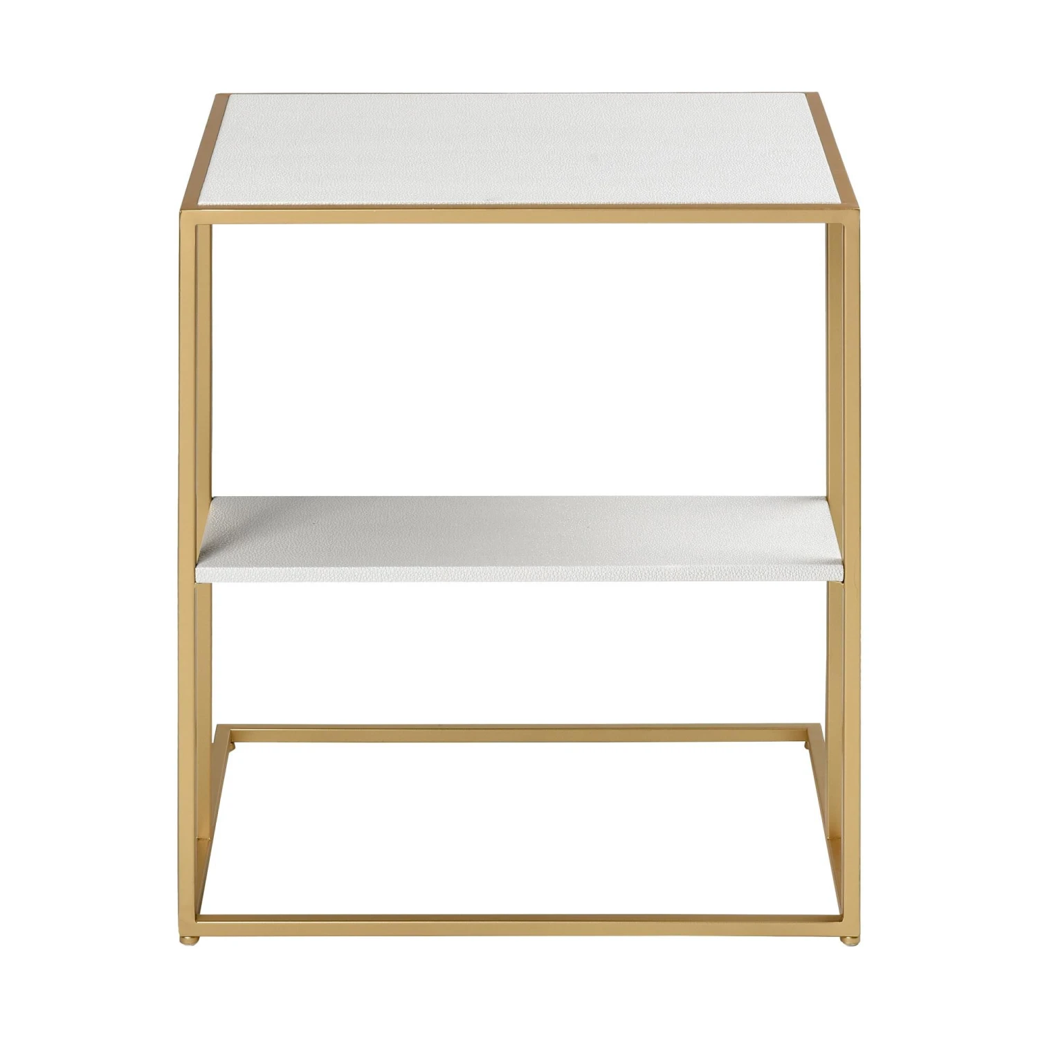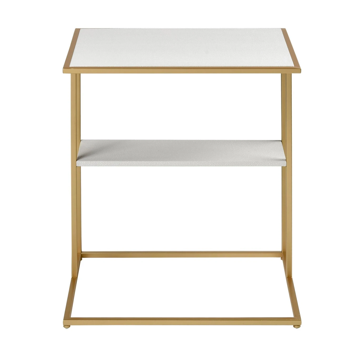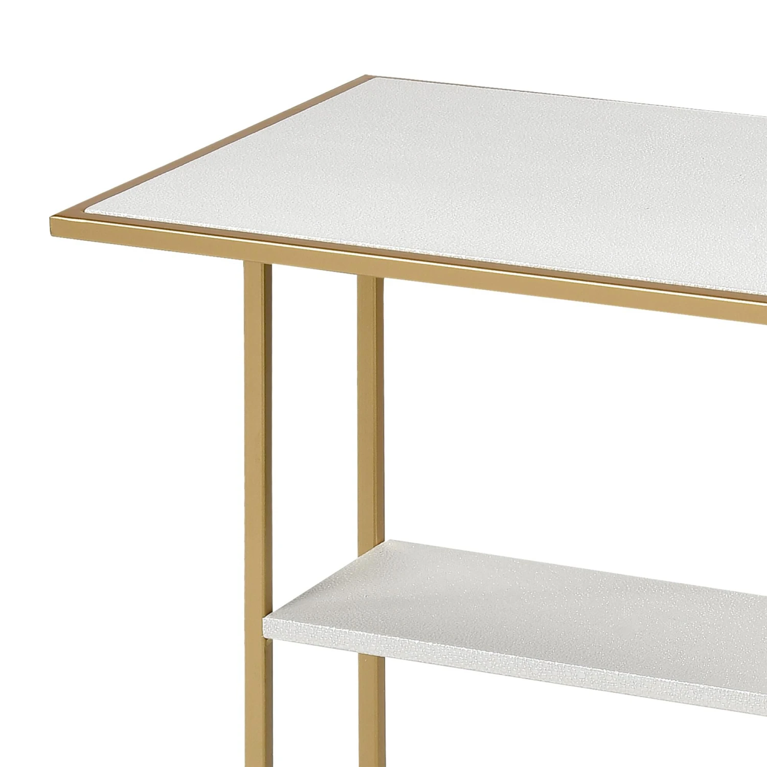 The Fawley Table is ideal for accenting a modern luxe space. Its iron frame comes in a glam, gold finish while its table top features white faux leather. Below the table top, an extra shelf provides added storage space for books or decorative objects. The Fawley is perfect for a living room, bedroom or hallway.