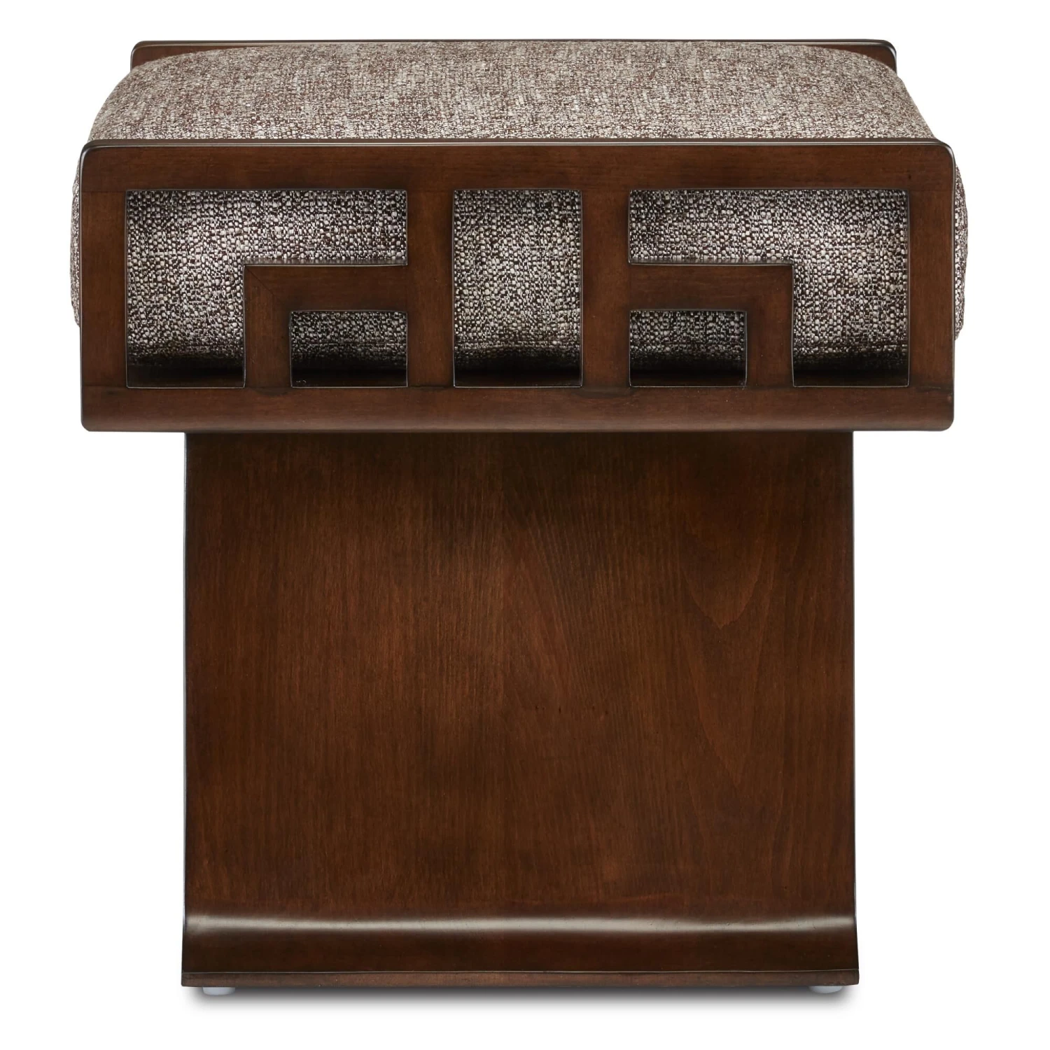 The Hari Swagger Cocoa Ottoman furthers Barry Goralnicks exploration of the Greek Key motif. The universal form, originally called the Meander, was found in ancient civilizations all over the world, he notes; interestingly, in cultures that could not have known one another. The frame on the dark brown ottoman is made of beechwood in an espresso finish and the removable cushion is covered in Swagger Cocoa upholstery fabric. The arms are stylized versions of the form often found in Asian design; and the tapered legs with curved feet salute motifs that hearken back to calligraphy. Singly or in pairs, which would form an implied bench, this design works well as an accent for the end of a bed, the edge of a foyer, or as an element in a seating arrangement.