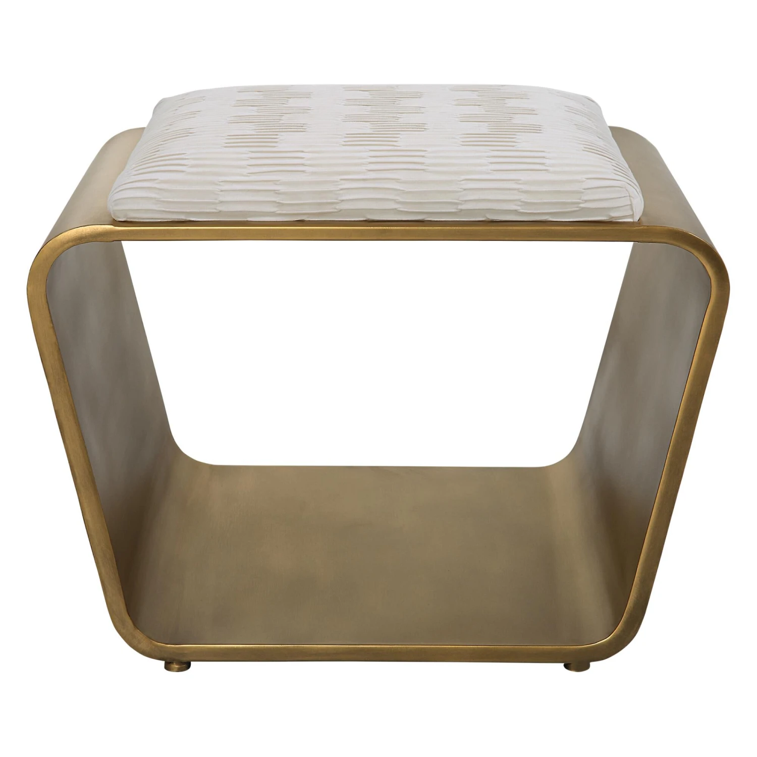 Stylish And Glamorous, This Unique Accent Bench Features An Off White Pleated Fabric Atop A Looped Metal Base Finished In Antique Gold.