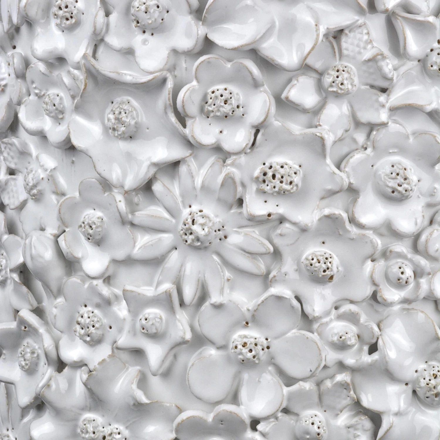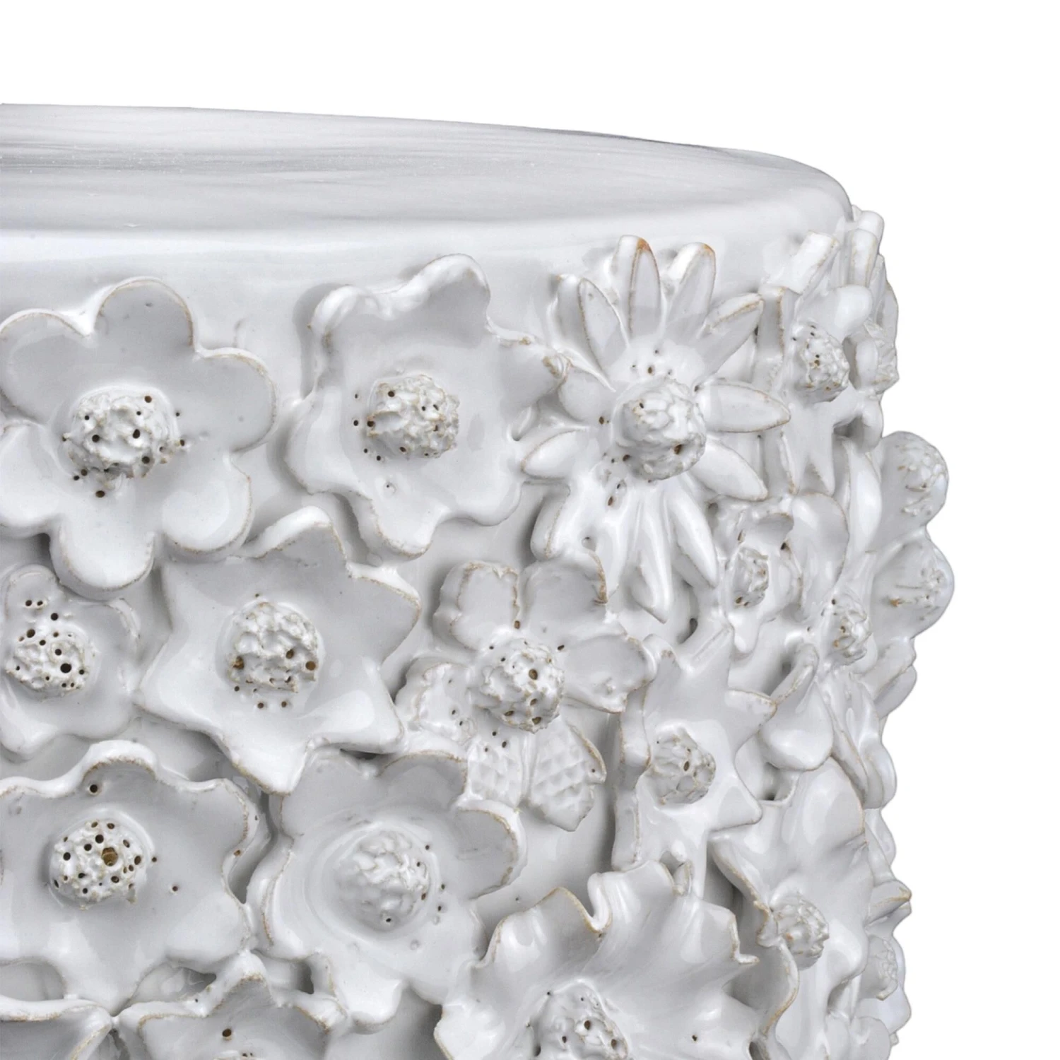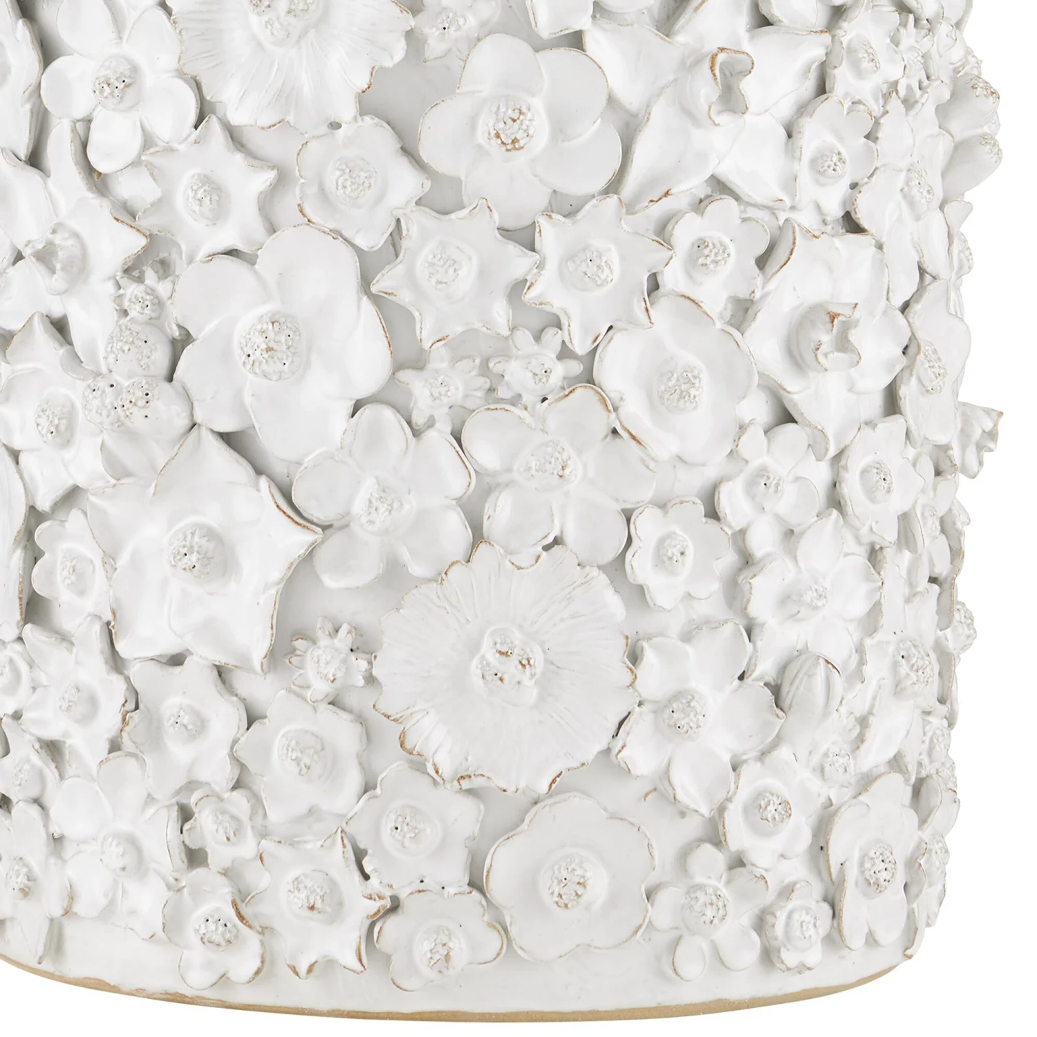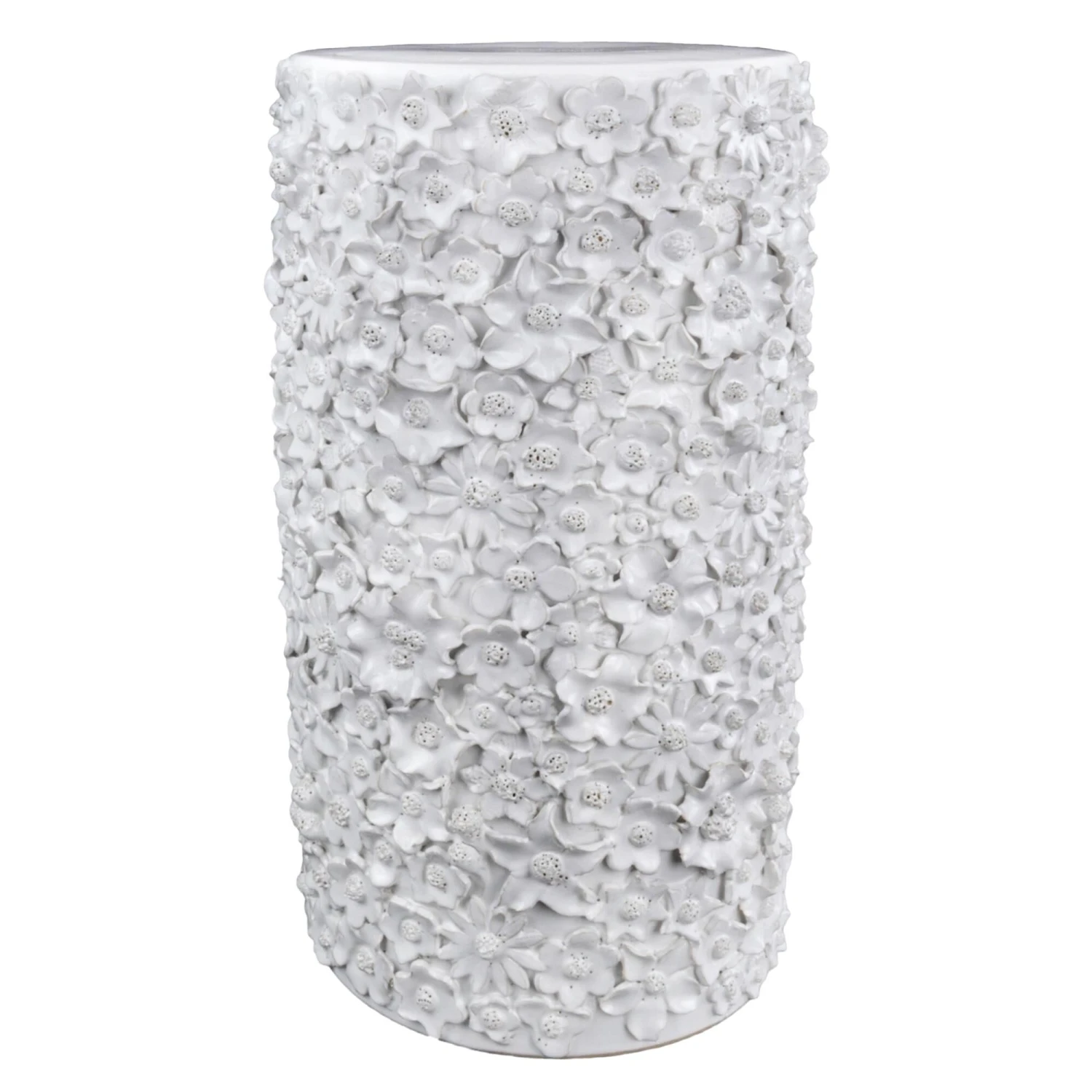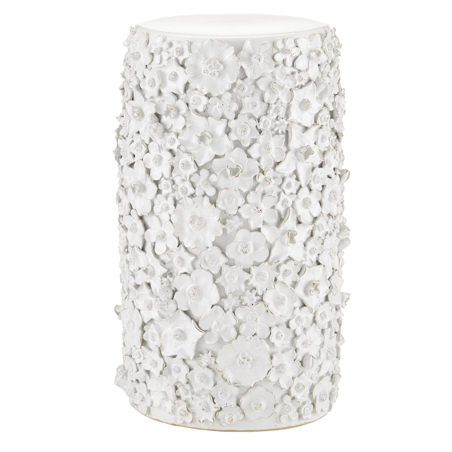 With a surface that is studded with beautifully fashioned white flowers, the Jessamine White Side Table is truly an artisanal piece. Rather than apply one type of bloom, a number of floral shapes are intermingled to give the white decorative table charm. The handmade character of the piece comes from the fact that each flower is created individually and applied, one-by-one, by hand. The white accent table will be a lovely piece in a room.