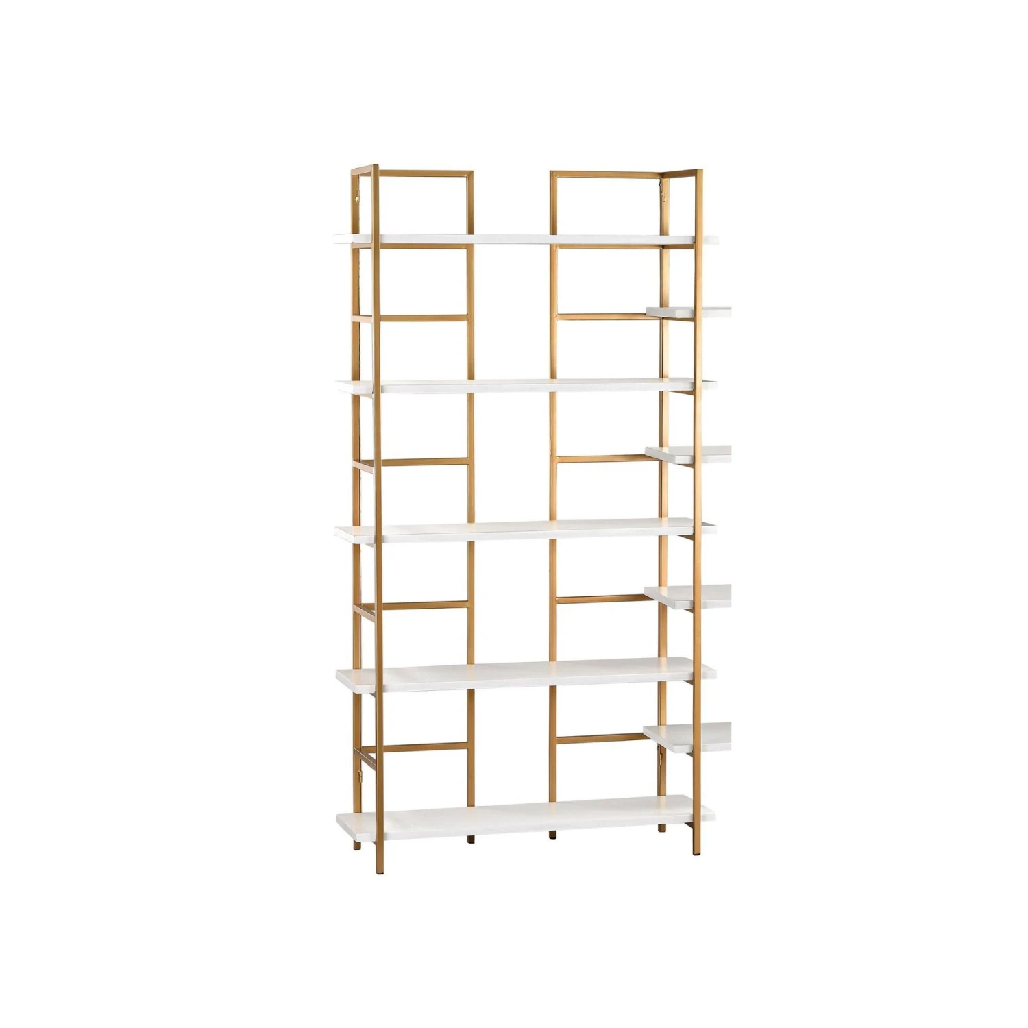 The words Contemporary and Reconfigurable are almost synonymous, and we add glamorous to that list with our Protractible Gold Shelving Unit. Streamlined, hand-soldered metalwork echoes the clean lines of Mid-Century era furnishings, while chic Gloss White shelves appear to float along the front of each independent vertical tower. Built in hinges and optional extension towers complete the feel by allowing for modern, staggered shelf configurations. Ideal for bringing verticality and sophistication to any large space.