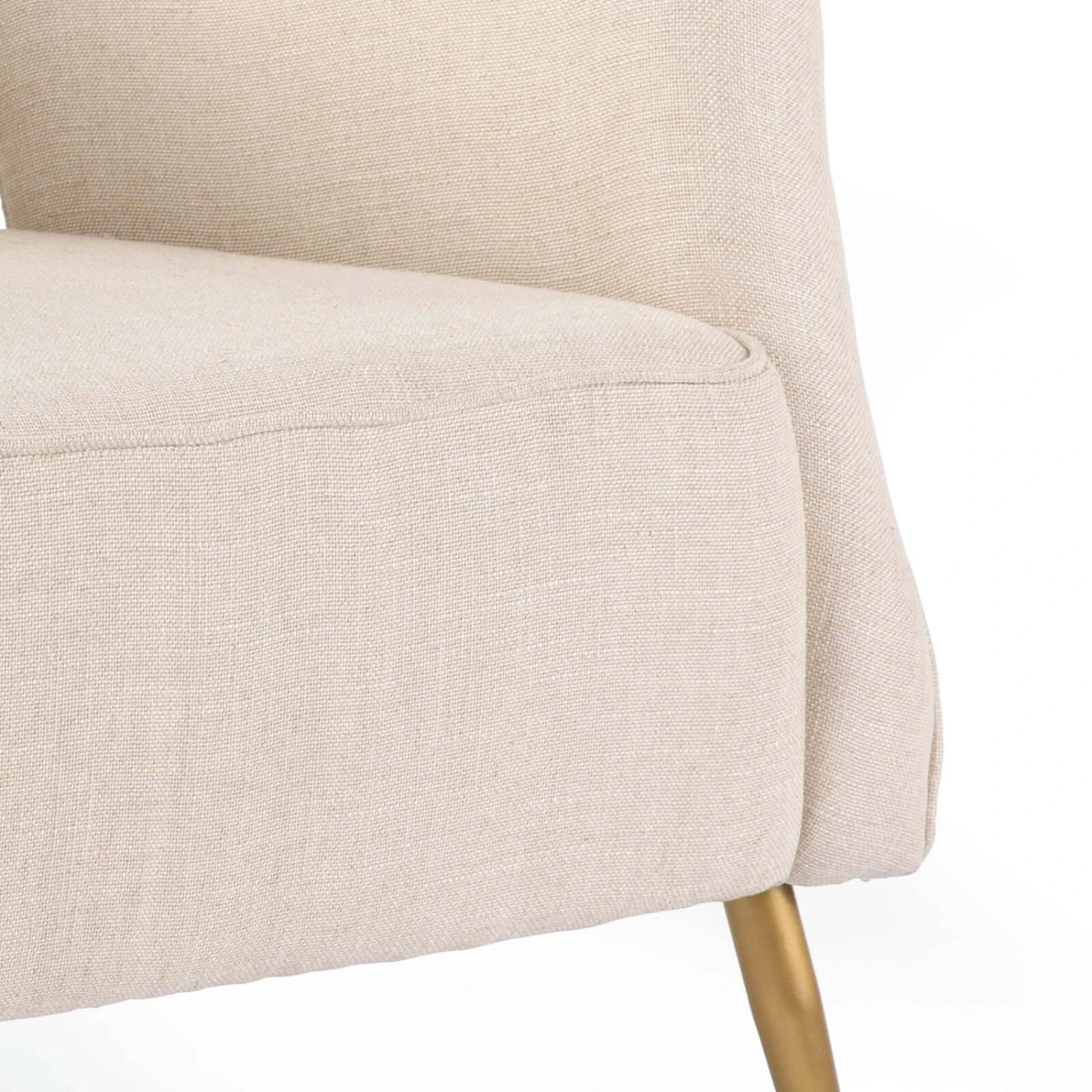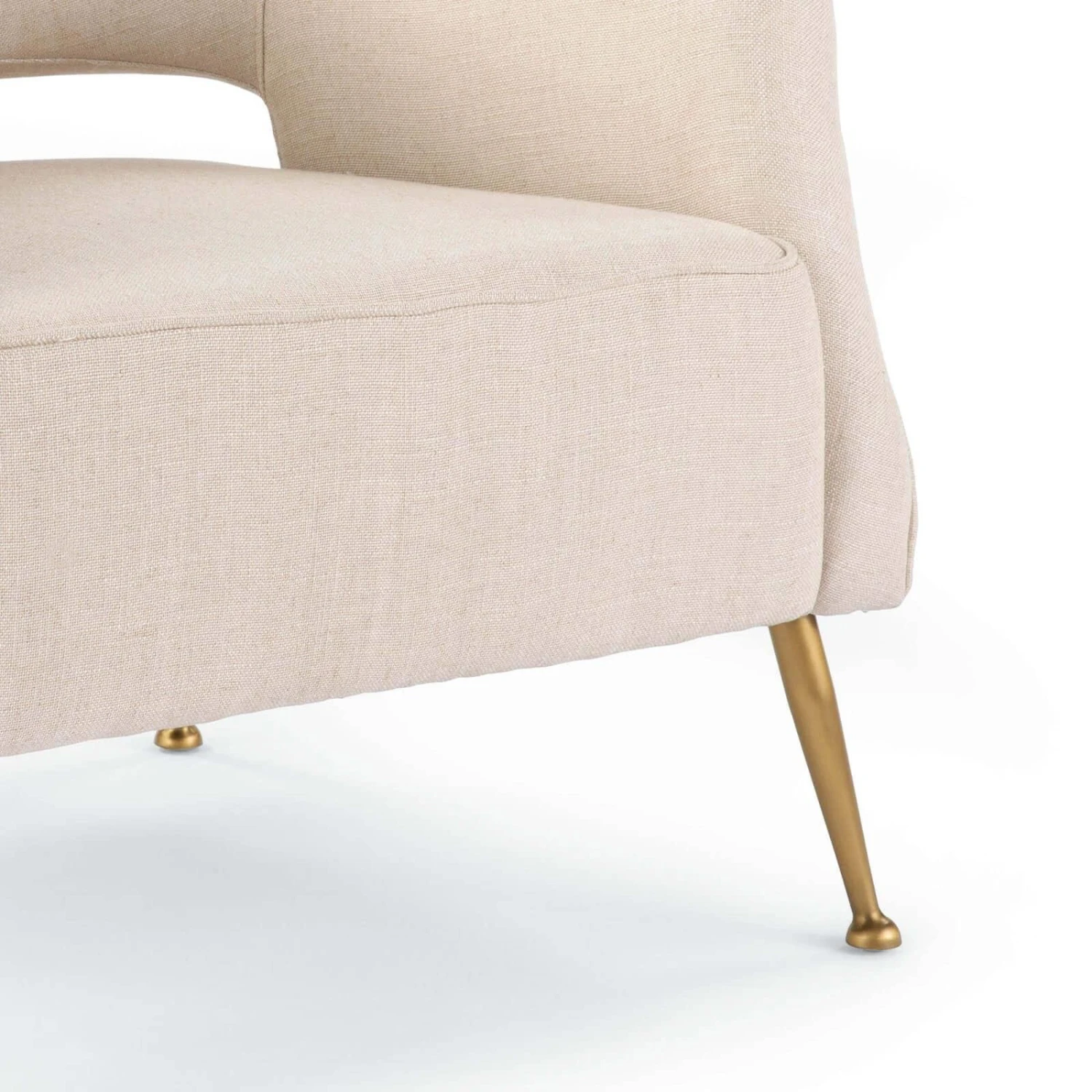 Elegant linen with a stylish cut out in the back gives this armchair a lush, tailored feel capable of complementing a range of interior designs.