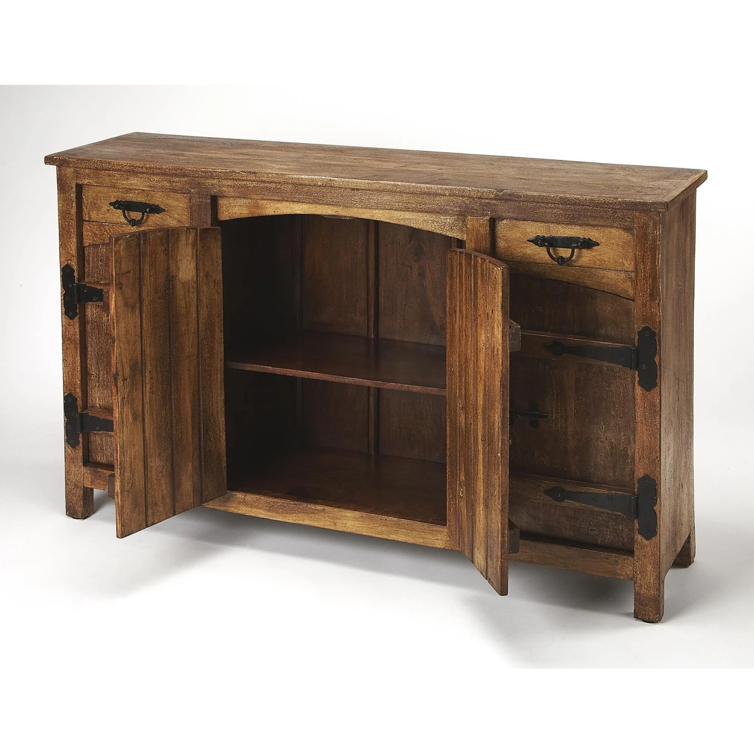 Modern entertainment meets rustic design in this solid wood sideboard. Each piece is uniquely characterized by natural color variations and hand finishing techniques reminiscent of the reclaimed look. Its ample interior is perfect for stowing some of lifes most important necessities whether it be stemware, linens, spirits or otherwise.