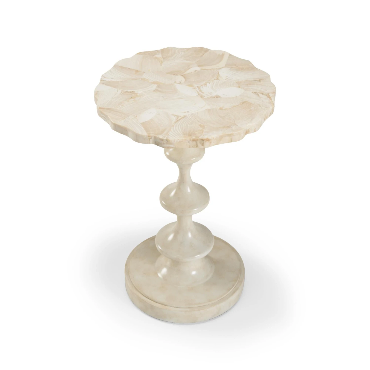 Chair Side Or Drink Table With Clamshell Top. Painted Wood Base.