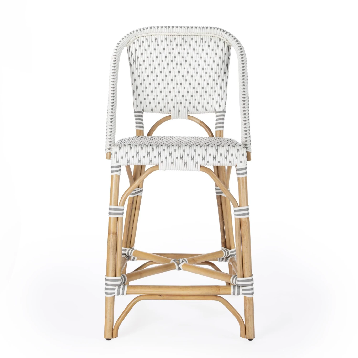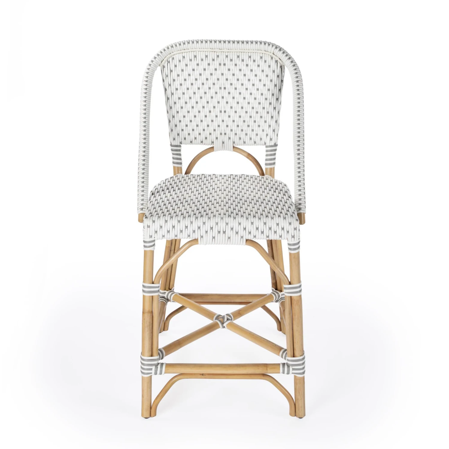 Function, form and fun all come together on this beautiful PU Rattan weave counter chair. The simplistic design of this counter chair is enhanced by a pop of contemporary design. The functional design of the counter chair with its intricate patterned weave and patterned chair arms offer all attentions to details. Reminiscent of the outdoor cafes on the streets of Paris, while sipping an aperitif.The fresh new look of this counter chair will bring new life to your kitchen dining or pub dining.