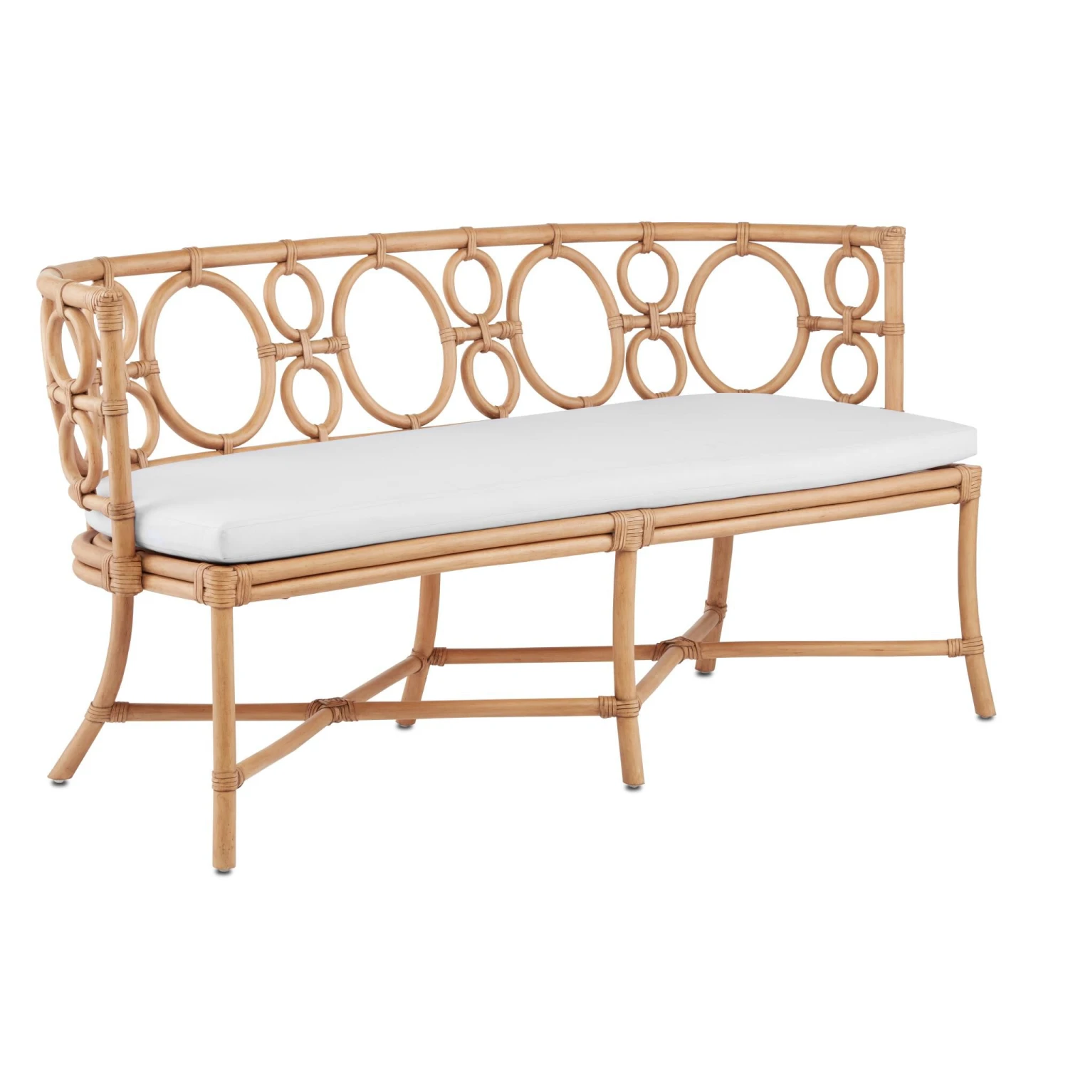 The Tegal Finn Natural Bench is made of solid rattan using a very traditional rattan construction technique. But instead of thinner reeds, the ties on this rattan bench are made of leather. The bench, which will fast become a favorite in a variety of spaces including sunrooms and beachside living rooms, has a name inspired by a city in Central Java, an Indonesian country known for fine rattan craftsmanship. The natural material has a Sea Sand on Rattan finish. We also offer the Tegal as a chair.