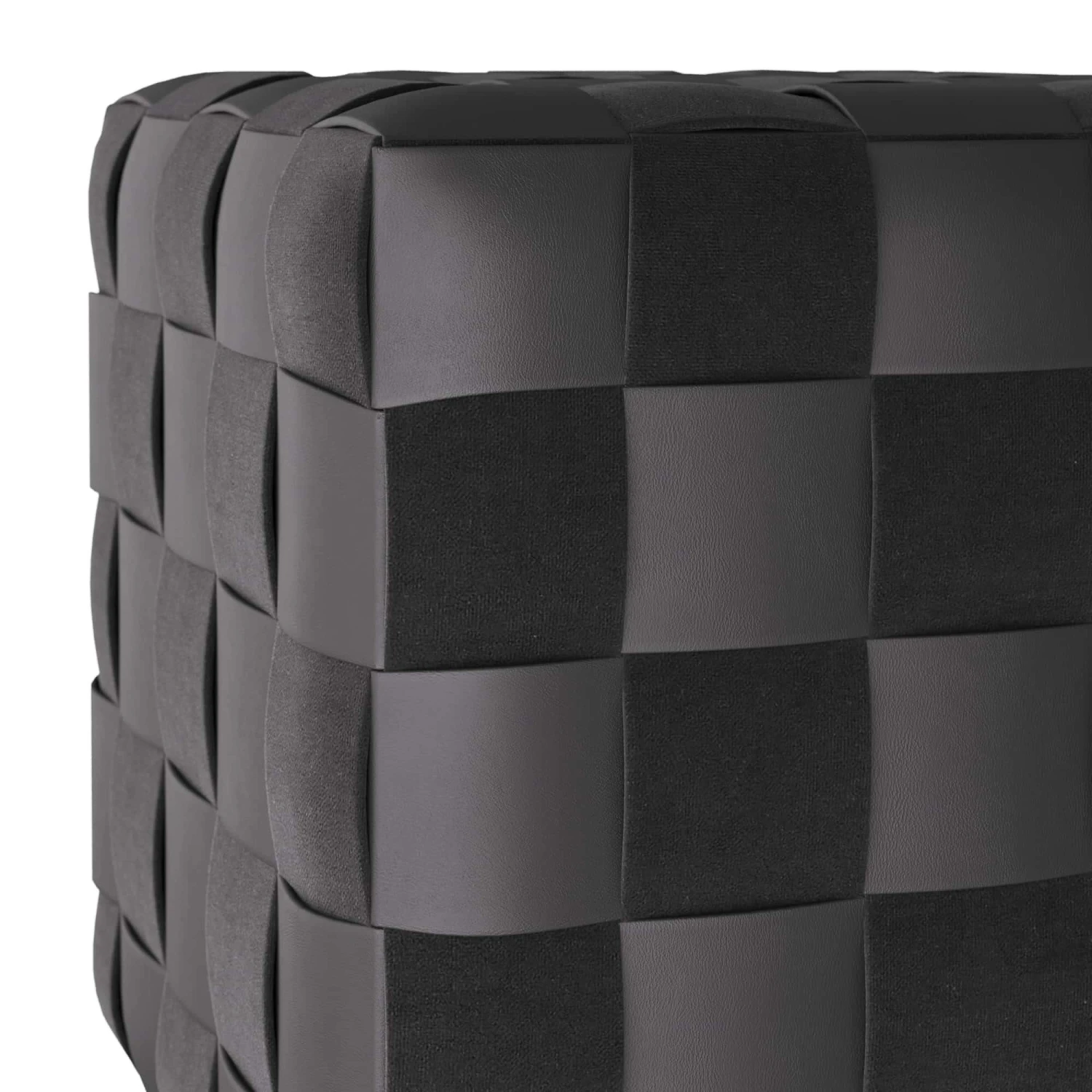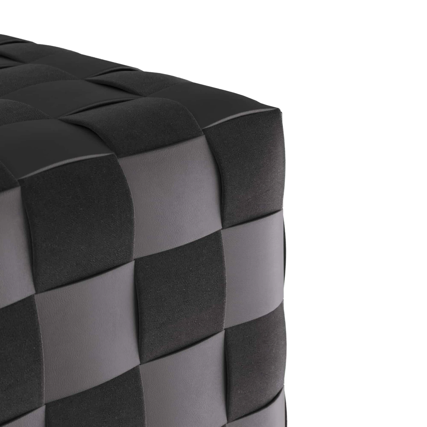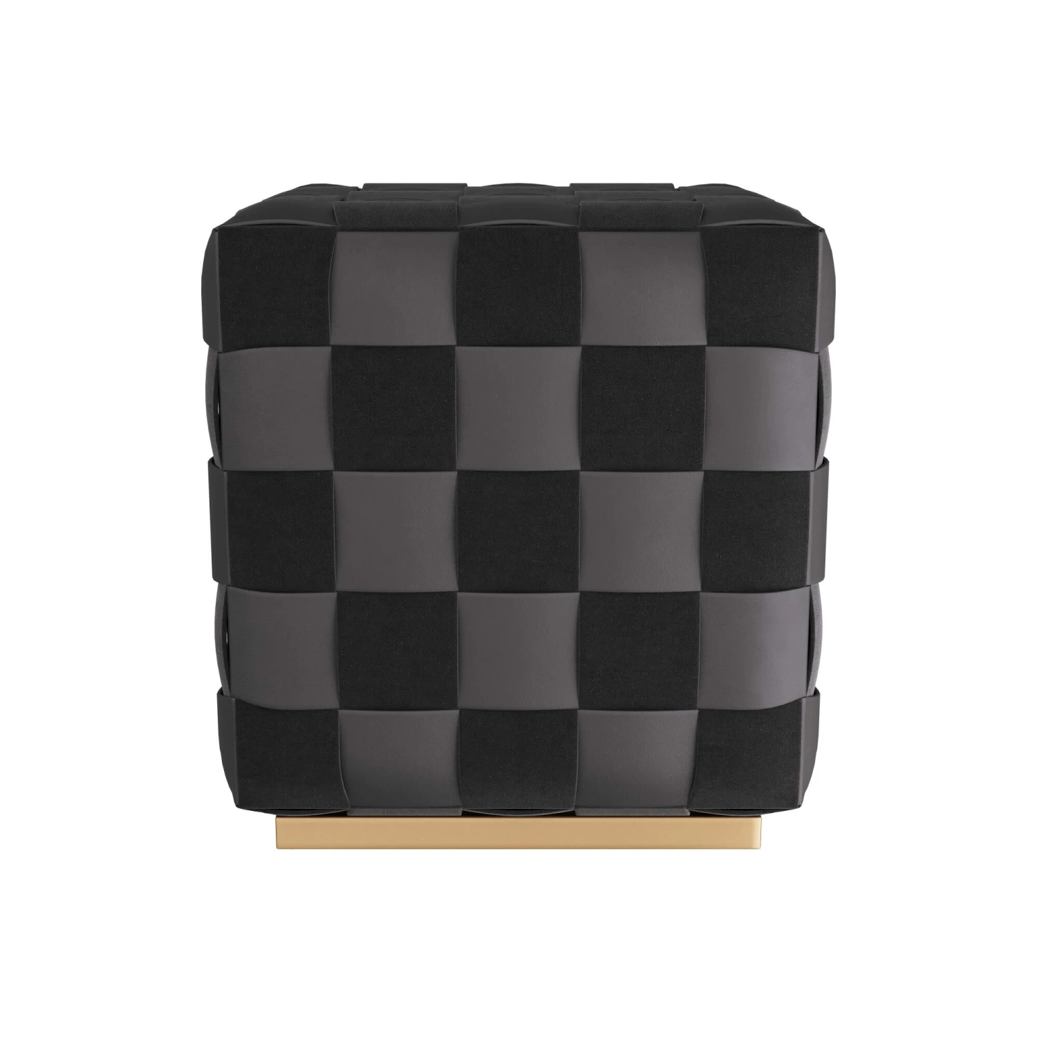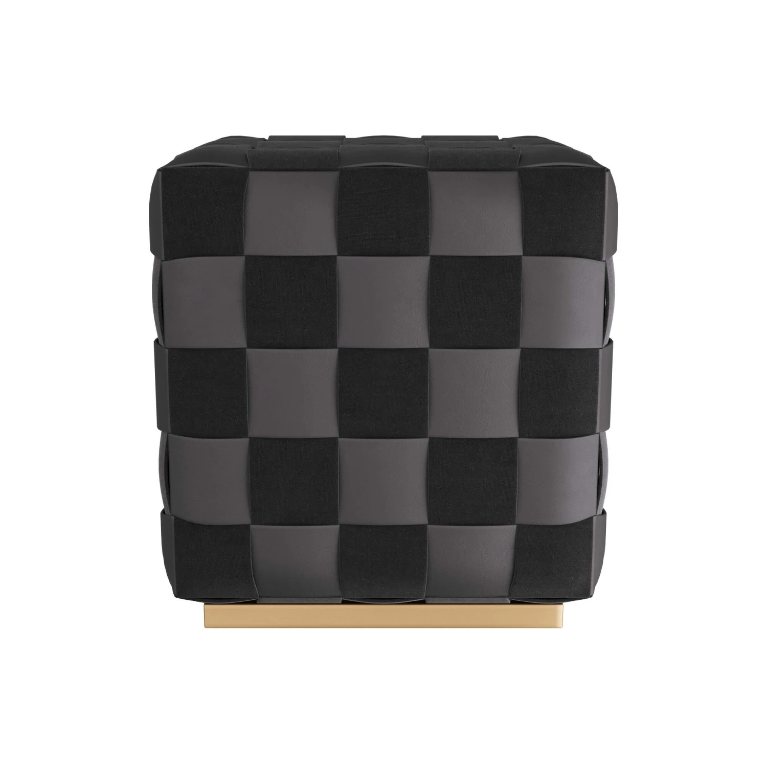 The Oversized Winnetka Ottoman Makes A Graphic Addition To A Living Space And Serves As A Stylish Option For Additional, Pull-Up Seating. The Playful Cube Is Woven Entirely In Black Leather And Suede, Forming A Tonal, Checkerboard Pattern. The Seat Rests On Recessed Antique Brass Plinth. Finish Will Vary.